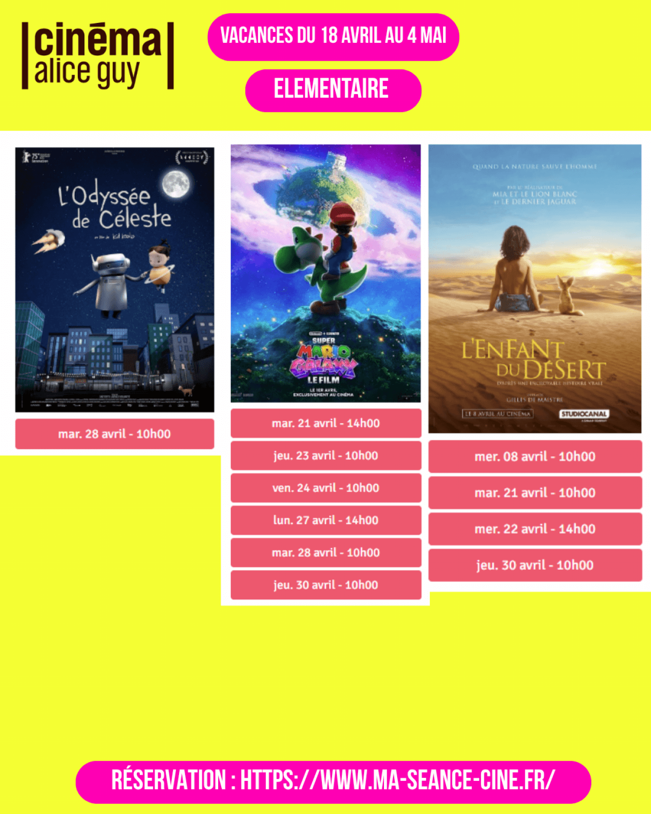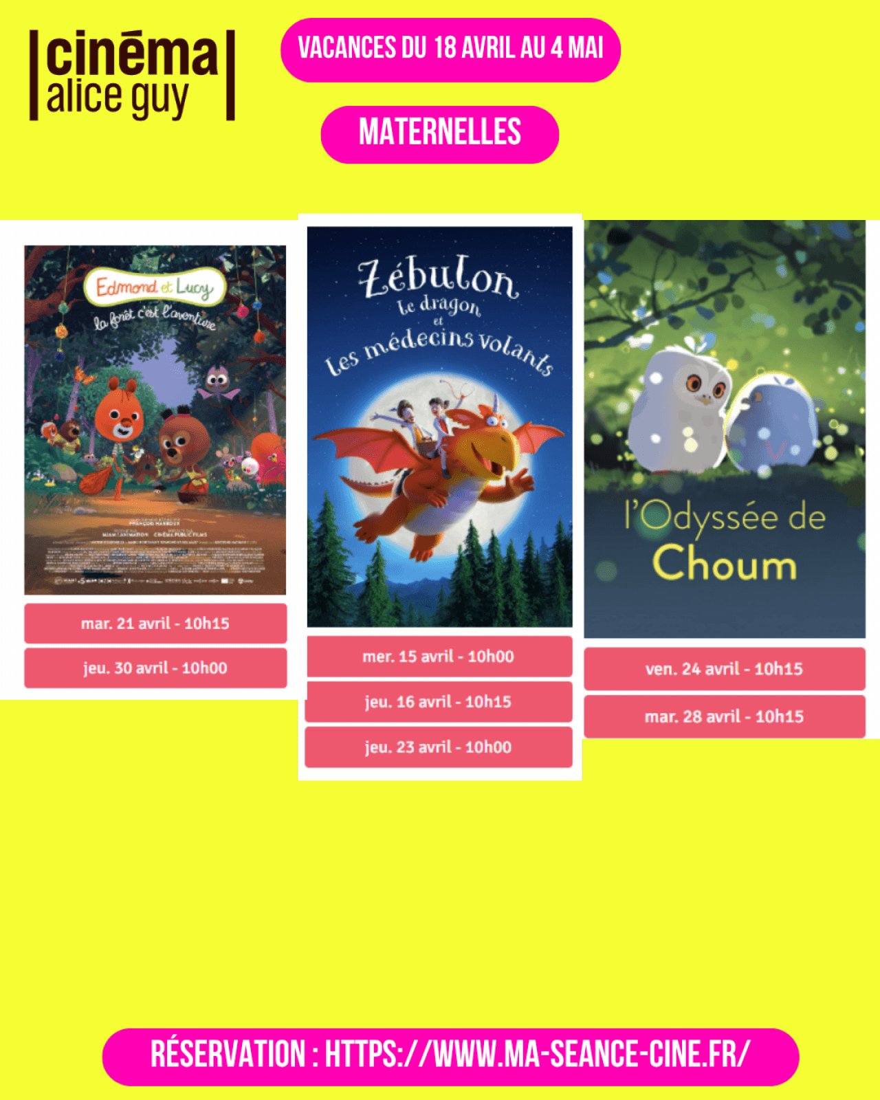 Chaque semaine, le cinéma Alice Guy propose une séance dédiée aux centres de loisirs, pensée spécialement pour les enfants et adaptée à leur âge.
